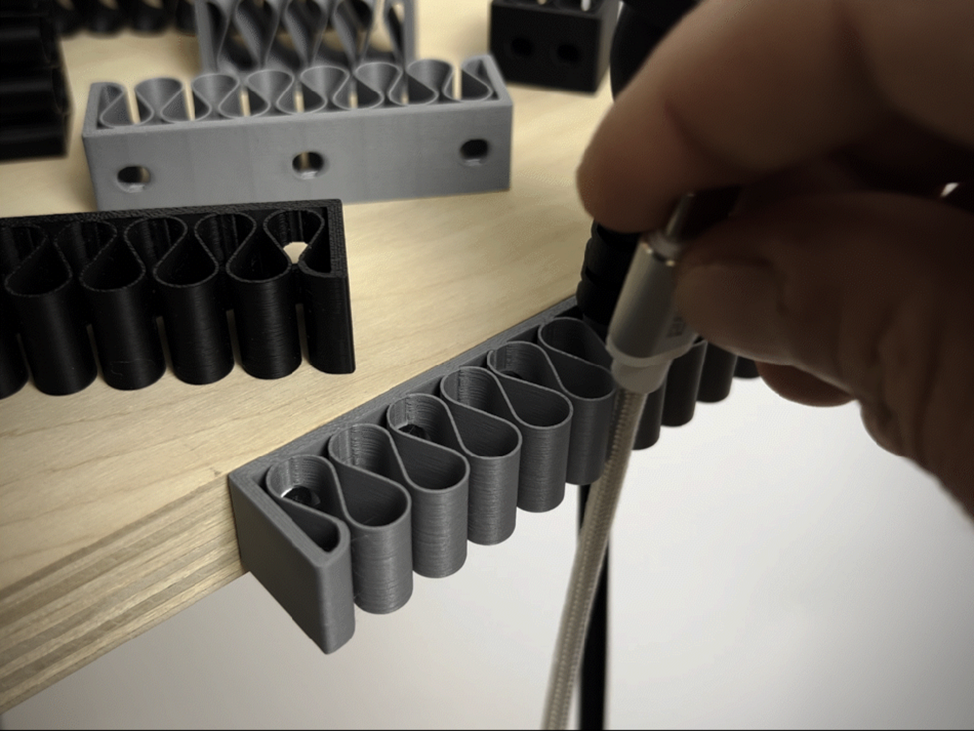 Bu masa altı kablo düzenleyici, şarj kablolarını ve uçlarını tek bir yerde toplayarak masa üstü/altı düzenini sağlar. Ürün tek parça PETG malzemeden 3D baskı ile üretilmiştir; sağlam yapısı sayesinde günlük kullanıma uygundur.
